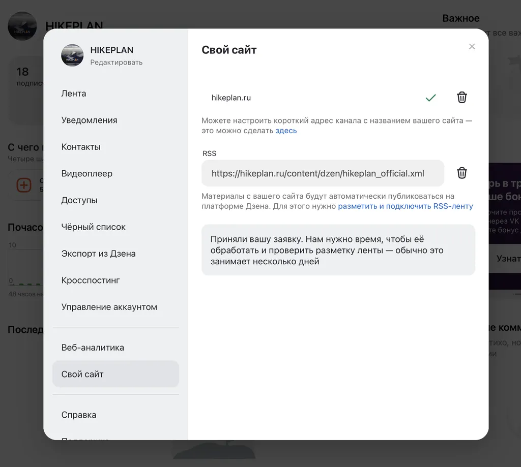 Если вы ведете блог на HIKEPLAN то теперь вы можете легко настроить автоматическую публикацию ваших статей в ваш Дзен.
