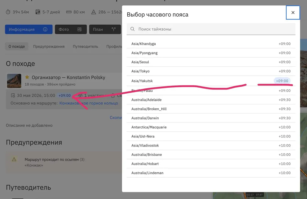 Мы все живем в одних местах, а ходим или изучаем походы в других регионах. Мы находимся в разных часовых поясах.