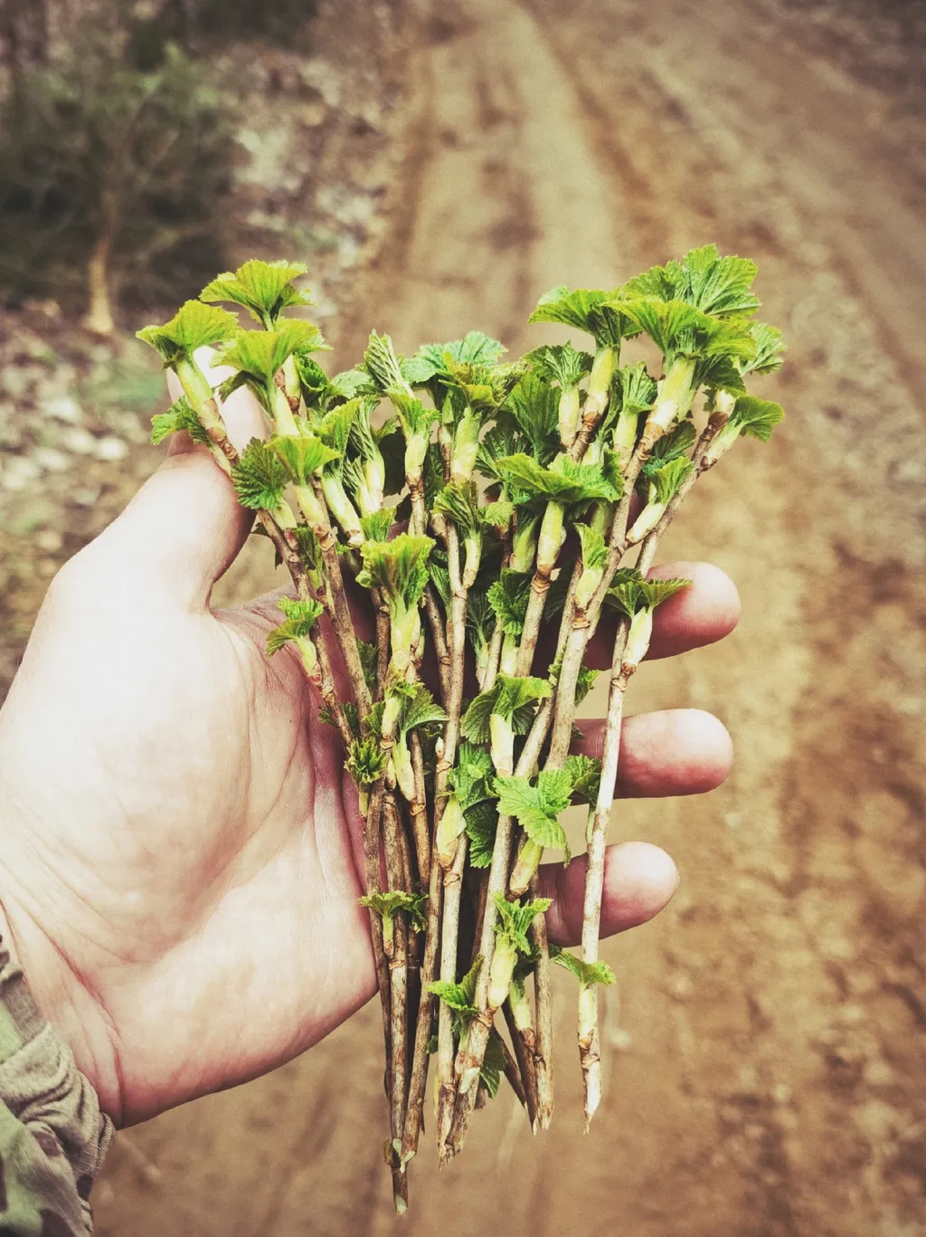 Находим куст, срезаем верхние мягкие светло-серые побеги, как на фото. Не забываем их сполоснуть. Далее зависит от способа приготовления. Можно закинуть пучок веток в термос, кинуть туда черного чая и залить кипятком. Если готовить в чайнике или в котле на костре, кидаем в холодную воду, доводим до кипения и минутку варим, убираем с огня, добавляем чай и ждём, пока чай нормально заварится. Веточки можно нарезать поменьше, тогда меньшее количество даст больше вкуса. Также не обязательно ждать, когда распустятся почки, главное, чтобы пошёл процесс сокодвижения.